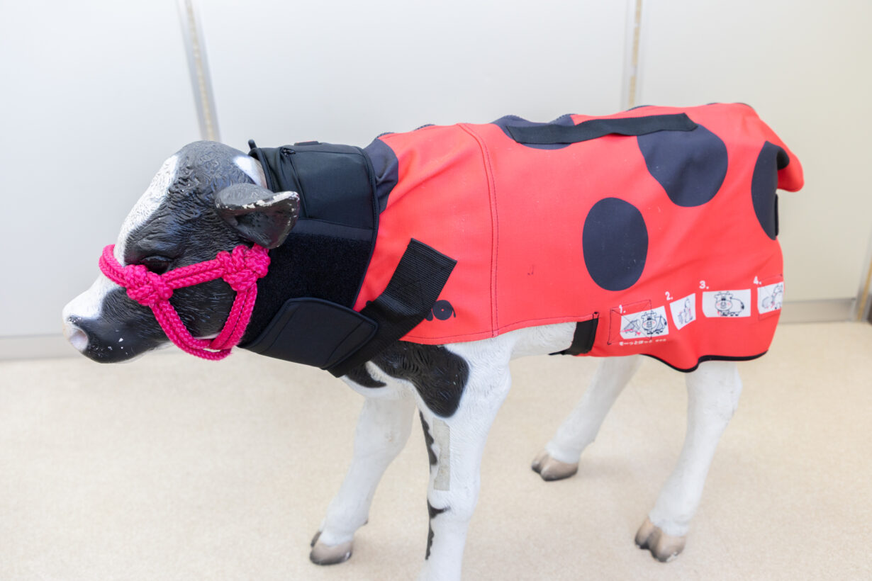 USIMO(ウシモ)ですね。5年程前にお客様からの要望で作りました。「人間は寒さに耐える術があるが、生まれたての子牛は寒さで死んでしまうことがある」という話から、牛用の防寒具を開発してほしいというご依頼でした。