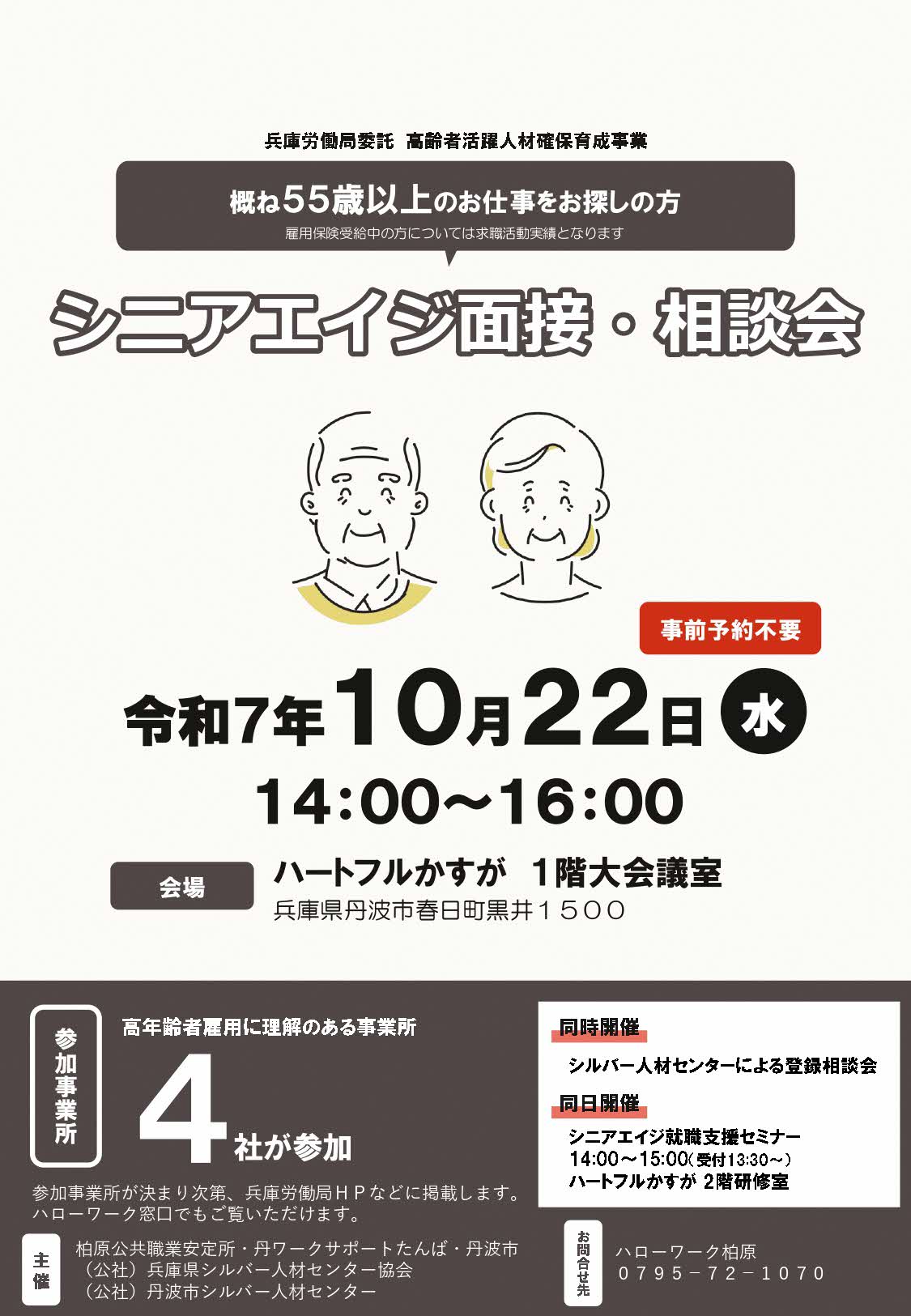 概ね55歳以上のお仕事をお探しの方を対象とした、シニアエイジ面接・相談会を開催します。